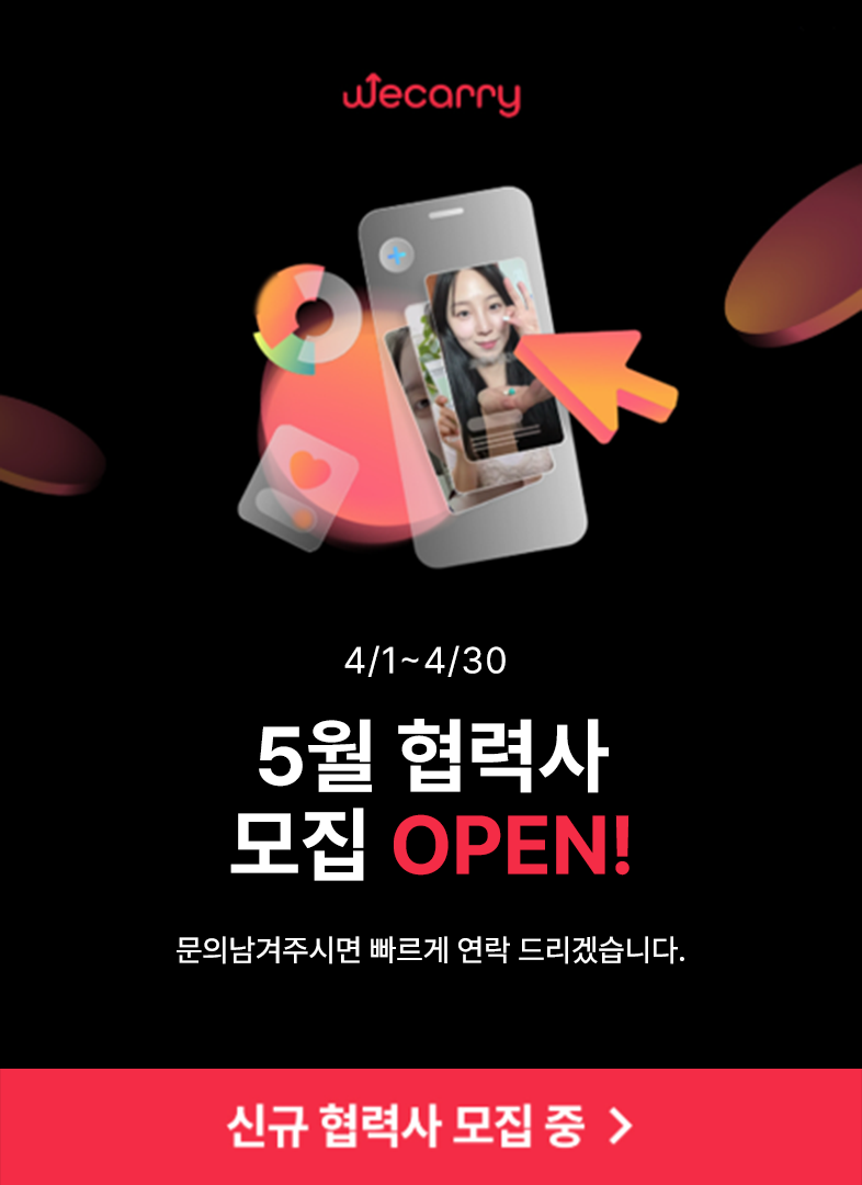 (주)위캐리컴퍼니(we+carry)는 매출 성장과 영업이익의 극대화를 목표로 하는 퍼포먼스 마케팅 에이전시입니다. e커머스 인하우스 및 대행사 경험으로 구성된 전문가 팀으로, 매출 스케일업을 위해 필요한 콘텐츠 기획, 촬영, 편집 및 광고 운영, 결과 분석까지 직접 리딩합니다. 단순 문어발식 계약 확장을 지양하며, 성과에 따른 마크업 계약을 통해 브랜드의 성장과 에이전시의 성장을 함께 가져갑니다. 1년 이상 협업해 온 브랜드사의 비율이 90% 이상이며, 최근 사업 확장으로 인한 신규 협업사를 모집 중에 있습니다.